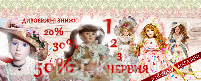 1, 2 та 3 червня запрошуємо усіх до нового, великого магазину за вражаючими знижками на ляльки, самоцвіти та інші незрівняні подарунки!